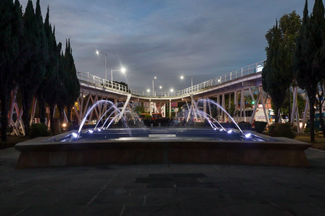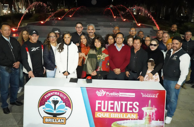 Como parte de la estrategia Puebla Brilla, se intervino la fuente con pintura, instalación de una bomba sumergible y luminarias LED, entre otros.