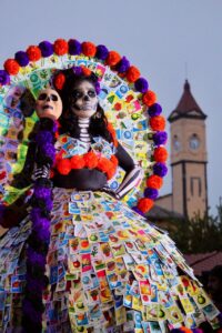 Al mismo tiempo, que las estudiantes del CECADE pintaban a la gente, en la explanada del zócalo se llevaba a cabo la pasarela de catrinas de la Escuela de Belleza “Embellezsrt”, con diseños creativos e innovadores, mientras que al mismo tiempo la gente también disfrutaba de la ofrenda monumental instalada en el Kiosco.