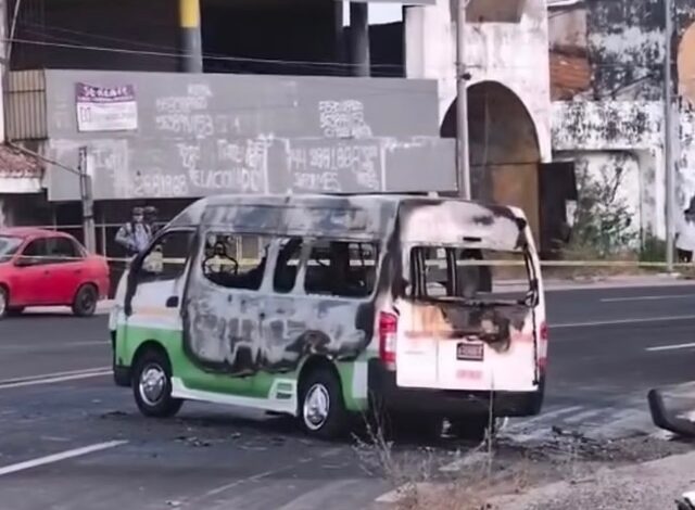 Balean e incendian combi en Acapulco; el chofer murió calcinado