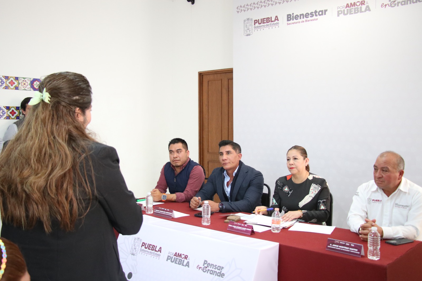En el encuentro estuvieron presentes el subsecretario de Vivienda, José Luis Figueroa Ortiz; la subsecretaria de Opciones Productivas, Elsa Ruiz Betanzos; el coordinador general de Desarrollo Comunitario y Trazabilidad, Edgar Chumacero; y el coordinador general de Delegaciones y Participación, Josué Martínez Santos.