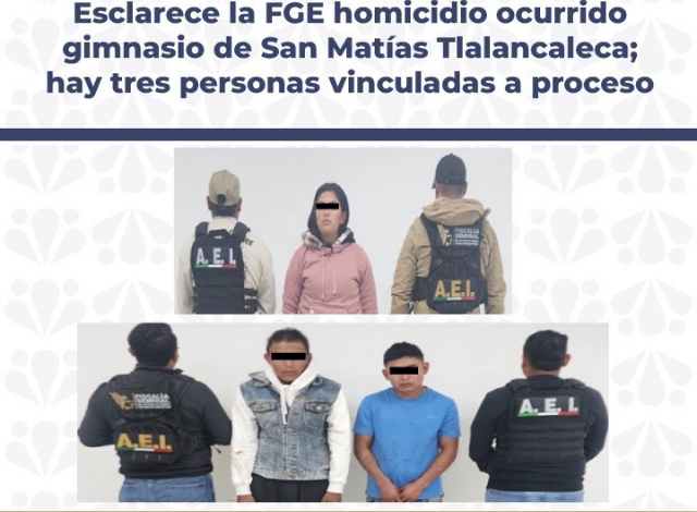 La Fiscalía General del Estado confirmó el esclarecimiento del homicidio de Liborio, de 58 años, ocurrido el 26 de septiembre en su gimnasio “Oxygen”, ubicado en el municipio de San Matías Tlalancaleca. La víctima fue atacada de manera directa por tres sujetos identificados como Alma Patricia N., David N. y Ángel David N., quienes ingresaron armados al establecimiento buscando al hombre.