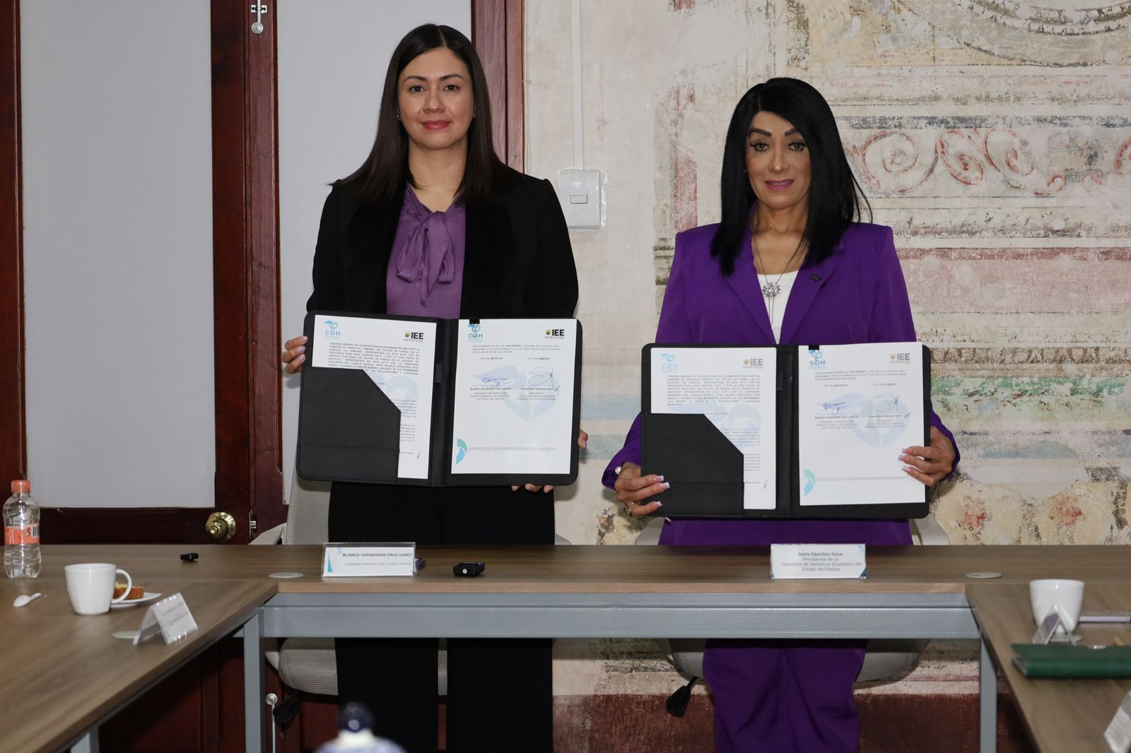 Durante el acto protocolario estuvieron presentes la presidenta de la CDH Puebla, Isela Sánchez Soya, y la consejera presidenta del Instituto Electoral del Estado de Puebla, Blanca Yassahara Cruz García, así como las y los consejeros del Instituto Electoral del Estado de Puebla.