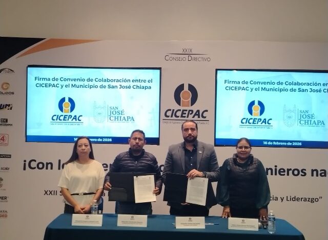Colegio de Ingenieros Civiles del Estado de Puebla y el municipio de San José Chiapa firman convenio de colaboración.