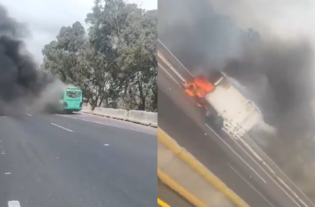 Cierran autopista México-Puebla por vehículos incendiados