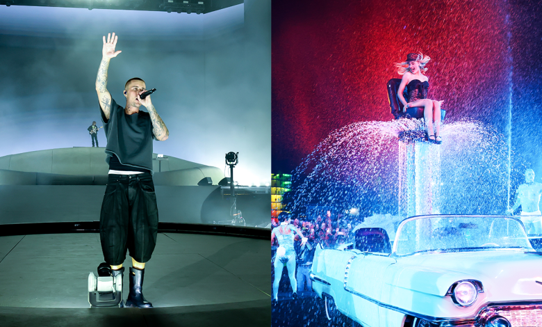 Bieber regresó como headliner tras años fuera del festival. Optó por una puesta sin escenografía. Utilizó micrófono y una laptop para controlar audio y proyecciones. Recorrió canciones de distintas etapas, incluyó “Stay” y colaboraciones con The Kid Laroi, Tems y Wizkid. El ritmo priorizó interpretación vocal.