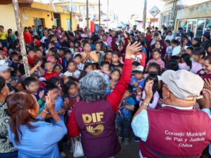 San Pedro Cholula, Pue.- En el marco del Día del Niño, el DIF Municipal de San Pedro Cholula, encabezado por la Mtra. Lupita Fernández, continúa llevando el Festival Tlazopilli a las juntas auxiliares del municipio, acercando alegría, juguetes y actividades recreativas a la niñez cholulteca.