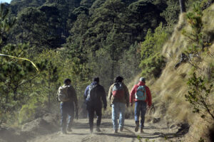 Desde tempranas horas, habitantes de Santiago Xalitzintla, en el estado de Puebla, se congregan para pedir permiso al volcán antes de emprender la ascensión a sus faldas. Acompañados con cantos y música tradicional, avanzan en grupos rumbo al punto habitual de celebración, siempre cuidando respetar el radio de seguridad de 12 kilómetros alrededor del cráter que dictan las autoridades por razones de protección civil.