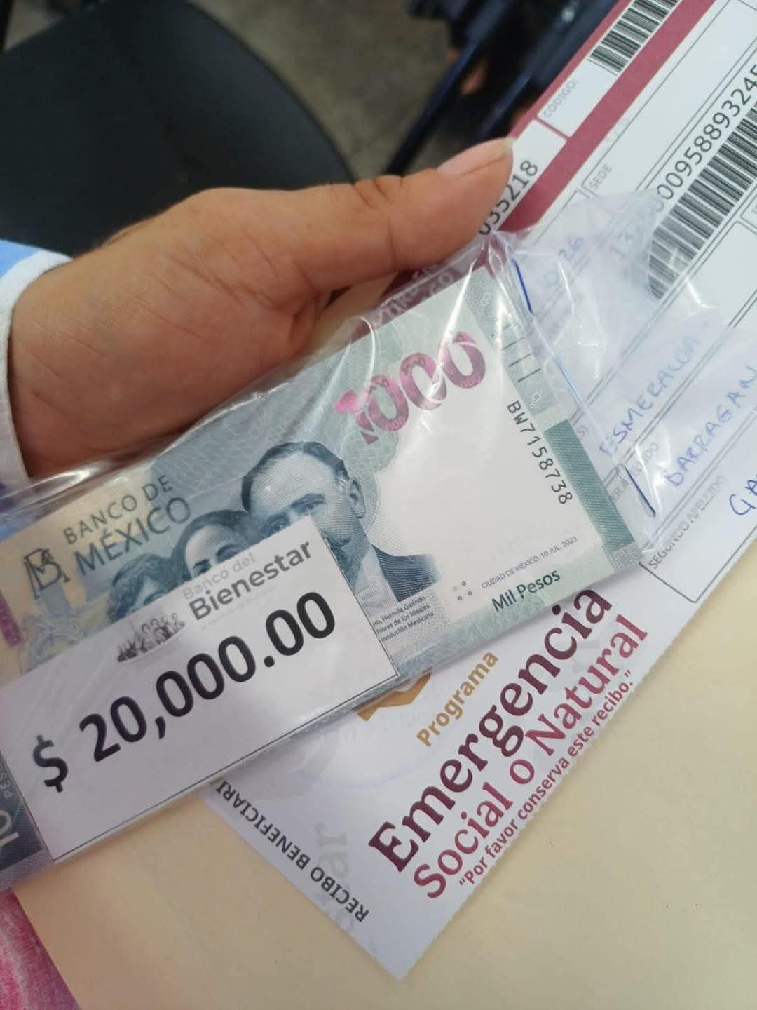 Explicó que al levantar el censo los Servidores de la Nación entregaron a los damnificados un cintillo con un número y el nombre del titular de la familia. Con este cintillo, los beneficiarios acuden al módulo del Bienestar para recibir el cupón.