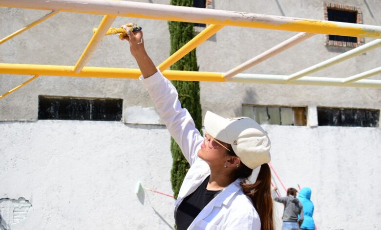 Como parte de las actividades, se trazaron nuevas líneas en canchas de fútbol y basquetbol, se repararon porterías y tableros, se pintaron gradas y bardas y se realizaron murales que reflejan identidad y apropiación del espacio público.