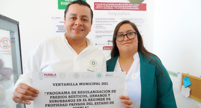El Gobierno Municipal de San Martín Texmelucan, que preside Juan Manuel Alonso Ramírez, a través de la Secretaría del Ayuntamiento y la Dirección de Bienes Patrimoniales en coordinación con la Dirección General de Tenencia de la Tierra y Población, aperturó la ventanilla del Programa de Regularización de Predios Rústicos, Urbanos y Suburbanos en el Régimen de Propiedad Privada del Estado de Puebla, misma que se encuentra en el Centro Integral de Servicios (CIS).
