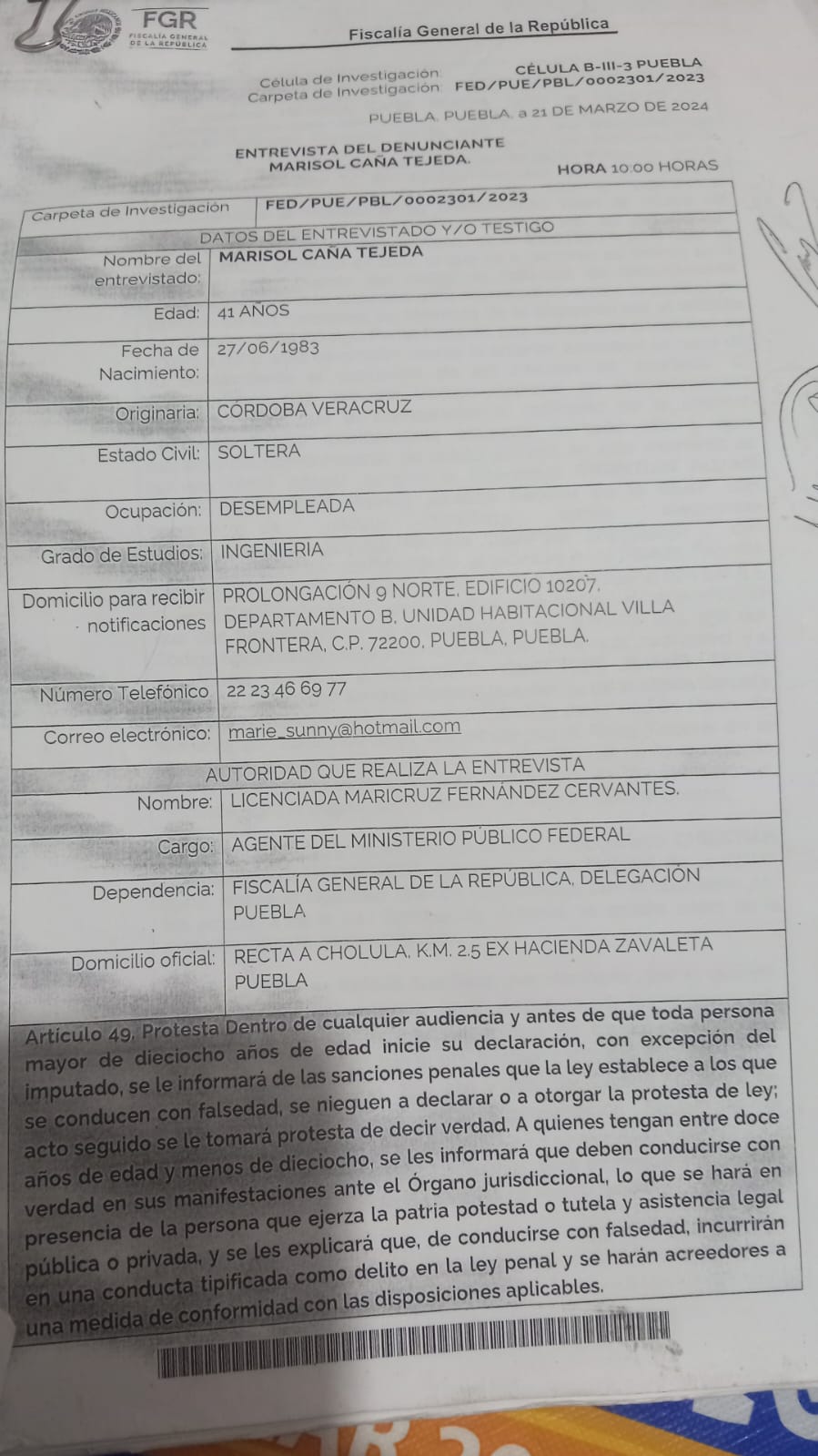 A pesar de haber denunciado el caso ante la FGE y de que se abriera la carpeta de investigación 2301/2023, Marisol se ha topado con dilaciones, contradicciones en los dictámenes y pruebas presentadas. Hoy Marisol alza la voz para dar celeridad a su caso por parte de la fiscalía y de todas las instituciones involucradas en él.