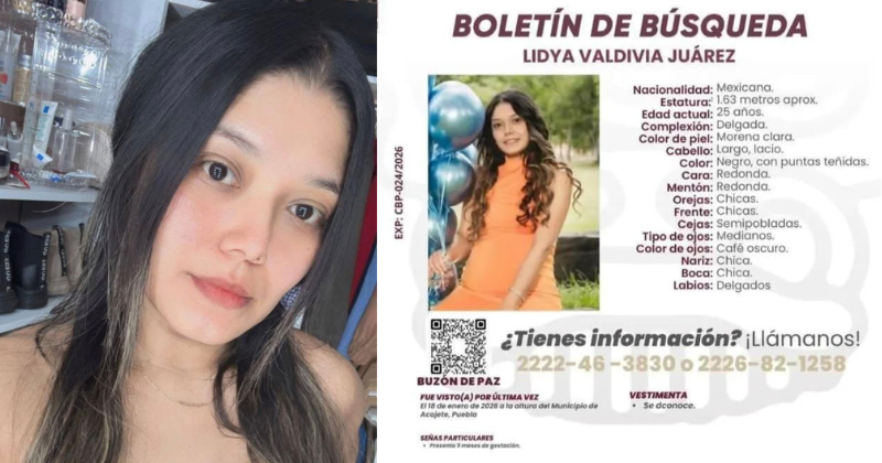 Lidya alertó que la seguían y no volvió a Acajete; está embarazada Lidya Valdivia, de 25 años, desapareció durante la madrugada del 18 de enero y desde entonces no se sabe nada de su paradero. Sus familiares piden a las autoridades agilizar las investigaciones para que regrese a casa sana y salva. De acuerdo con los primeros reportes, los hechos ocurrieron alrededor de la 1:00 de la … | |
