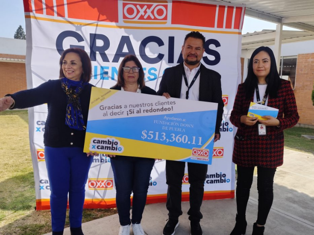 Entrega Oxxo donativo a Fundación Down de Puebla La Fundación Down de Puebla A.C. recibió un importante donativo por parte de una cadena de tiendas de conveniencia en Puebla, recurso que se obtiene a través del redondeo de centavos que realizan los clientes a favor de instituciones que más lo necesitan. Este lunes se llevó a cabo la entrega del donativo, por un … | |