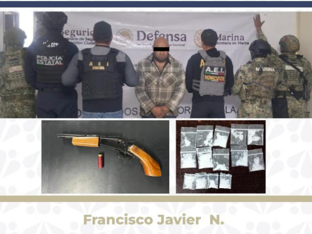 Detienen en Tecamachalco a presunto agresor armado y con droga La Fiscalía General del Estado (FGE), con apoyo interinstitucional, detuvo en flagrancia delictiva a Francisco Javier N., de 38 años de edad, por hechos con apariencia del delito de homicidio calificado en grado de tentativa, así como por la posesión de droga y de un arma de fuego. El 8 de febrero, agentes de investigación … | |