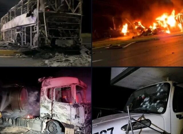 Aunque no se han reportado víctimas mortales ni heridos, sí hubo personas con crisis nerviosas y automovilistas varados durante horas. Las imágenes difundidas en redes sociales muestran camiones envueltos en llamas y columnas de humo en plena madrugada.