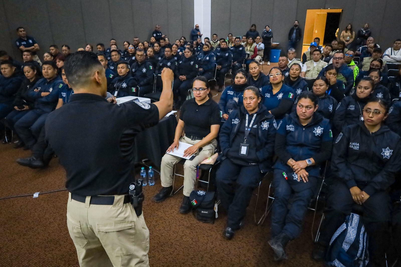 CIUDAD DE PUEBLA, Pue.– En cumplimiento al compromiso del gobernador Alejandro Armenta Mier de fortalecer las capacidades operativas de los cuerpos policiales, 140 elementos de la Policía Auxiliar y 41 de seguridad interna de Convenciones y Parques participaron en la capacitación “Protocolo de Actuación”.