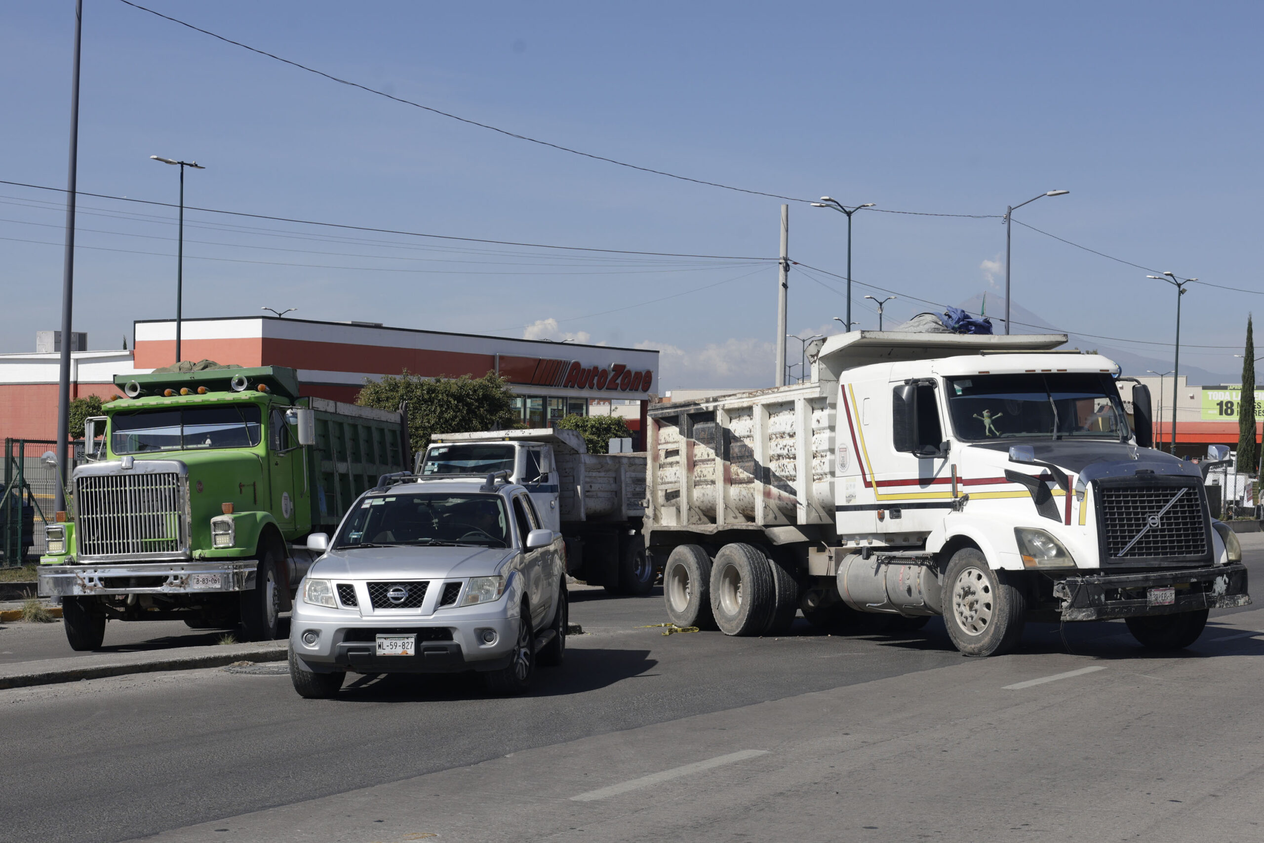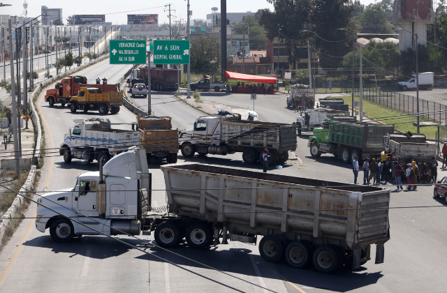 Por más de cuatro horas, transportistas del Sindicato 20 de Noviembre se presentaron desde muy temprano esta mañana en periférico ecológico a la altura de Periplaza y minutos antes de las 9 de la mañana enfilaron sus camiones de carga y volteos para bloquear en su totalidad el paso a los cientos de conductores que a diario circulan por este sitio, lo cual generó retrasos e indignación.