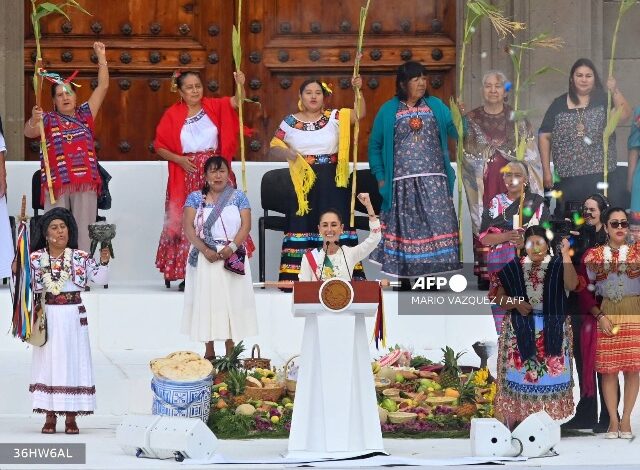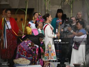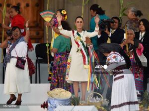 “Hermanita Claudia, te recibimos con amor, con alegría con gusto. Tú eres la voz de las que no tuvimos voz por mucho tiempo”, le dijo una mujer indígena antes de invocar a las deidades para que le den “iluminación y sabiduría” a la presidenta.