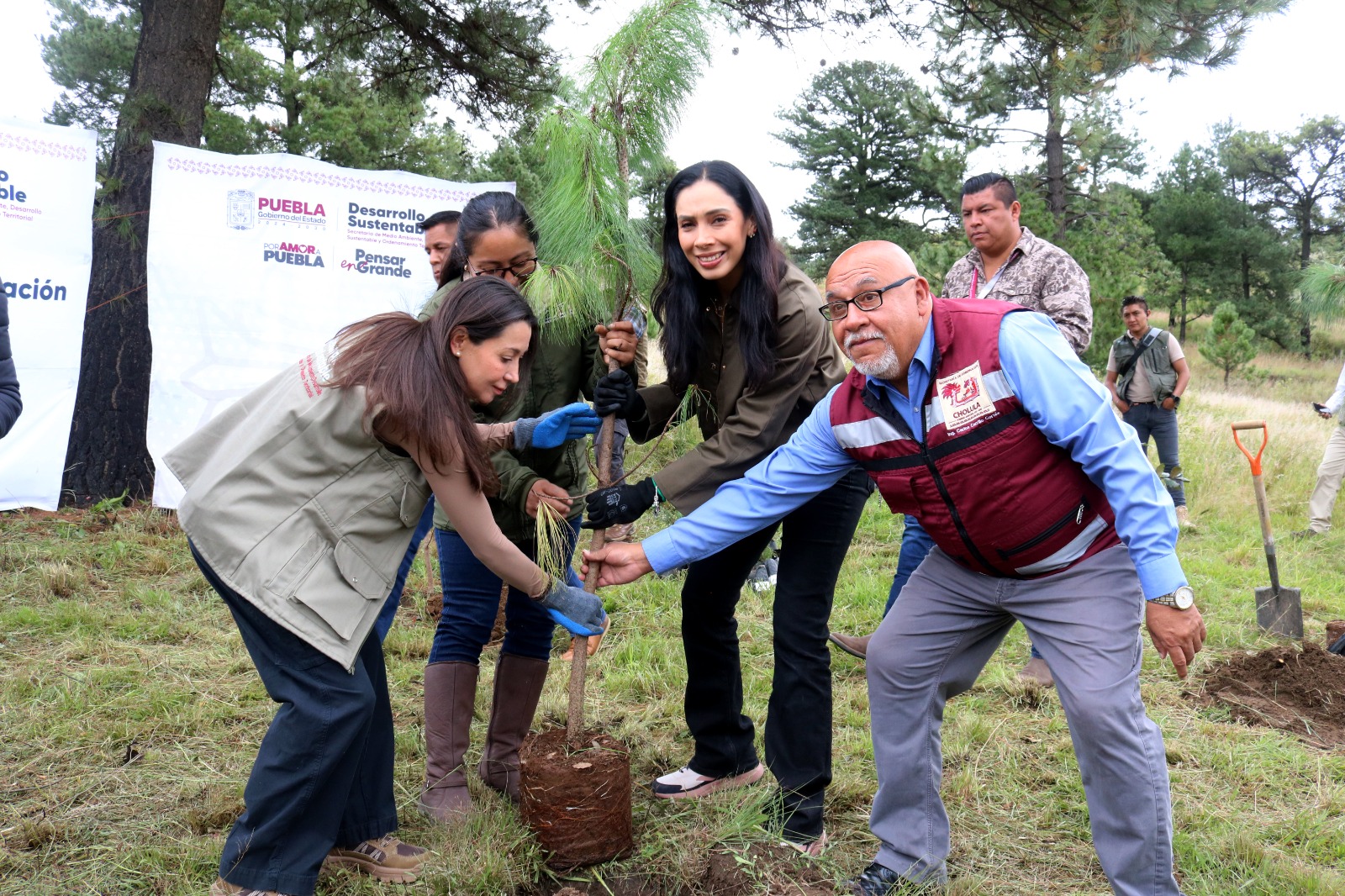 SAN PEDRO CHOLULA, Pue.– Para conservar la vida y los bosques, la secretaria de Medio Ambiente, Desarrollo Sustentable y Ordenamiento Territorial, Rebeca Bañuelos Guadarrama, encabezó la jornada de reforestación con dos mil plantas y la liberación de dos halcones de Cooper o gavilanes en el Área Natural Protegida Cerro Zapotecas.