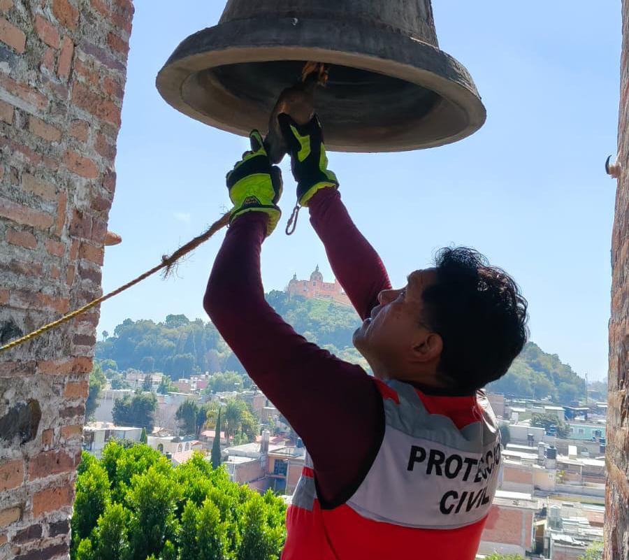 Durante los recorridos, se verificaron los amarres de los badajos y las estructuras de las campanas; además, se brindaron recomendaciones de seguridad a las y los campaneros, con el objetivo de descartar riesgos y garantizar un evento seguro para todas y todos.
