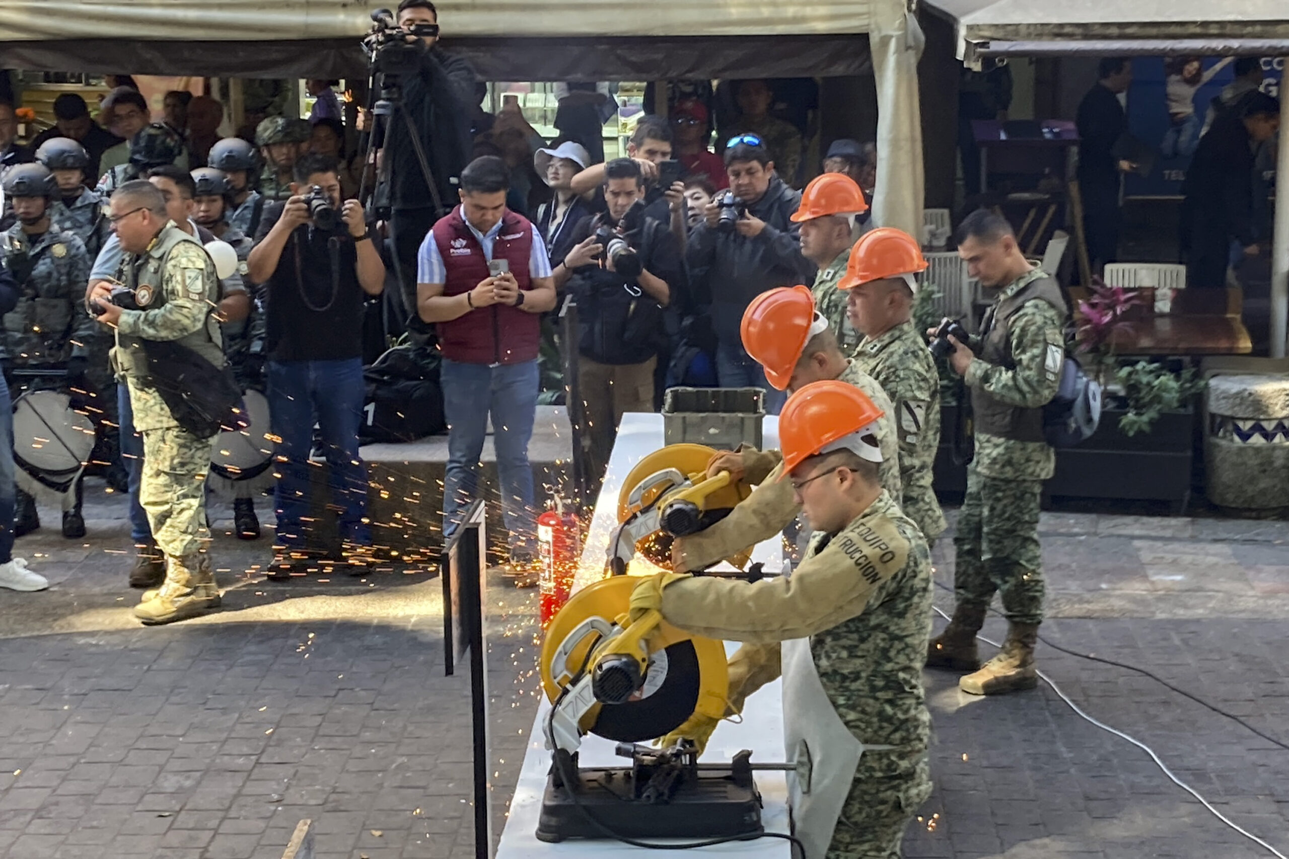 A la ceremonia acudieron el Secretario de Gobernación Samuel Aguilar, el Presidente Municipal José Chedraui y los miembros del Ejército, quienes anunciaron que se harán ceremonias de destrucción similares en Huachinango y Tehuacán que son armas que fueron decomisadas en la campaña de entrega voluntaria que tuvo en el año.