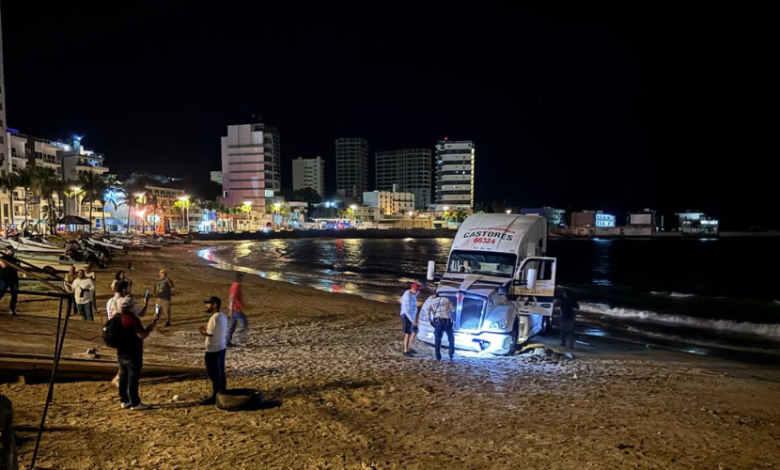 Selfie en la playa termina con tractocamión varado en Mazatlán