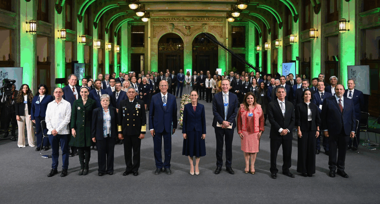 Ciudad de México, 08 de octubre de 2025.- La presidenta Claudia Sheinbaum Pardo presentó ante empresarias y empresarios de 17 países miembros del Foro Económico Mundial el Plan México, cuyos objetivos son fortalecer el mercado interno y el salario, impulsar la inversión pública y privada, y aumentar la soberanía alimentaria y energética, reduciendo las importaciones con países sin tratado comercial.