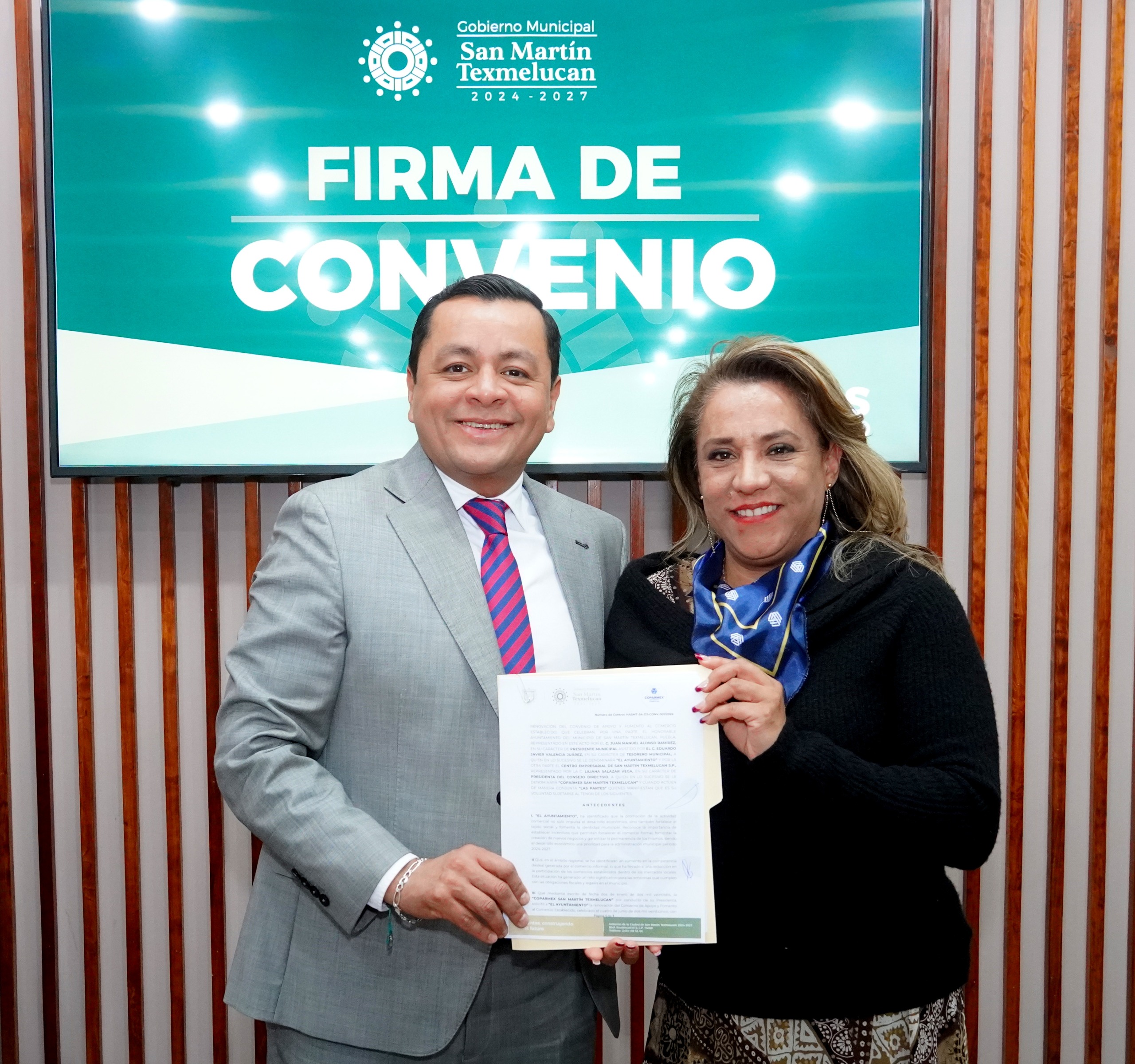 Con el objetivo de fortalecer a los sectores empresarial, comercial, de servicios y turístico, el Gobierno Municipal de San Martín Texmelucan, que preside Juan Manuel Alonso Ramírez, firmó convenios de apoyo y fomento al comercio establecido con CANACO SERVyTUR y COPARMEX.