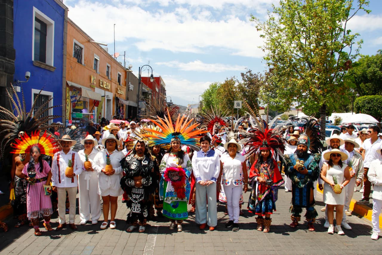 21 de marzo de 2026. San Pedro Cholula, Pue. – Con el objetivo de preservar y difundir la riqueza cultural de San Pedro Cholula, la presidenta municipal, Tonantzin Fernández, encabezó la peregrinación de danzas que partió de la Plaza de la Concordia hacia el atrio de la Iglesia de Nuestra Señora de los Remedios, ubicada en la Gran Pirámide.