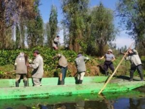Toneladas de cabello limpian los canales de Xochimilco