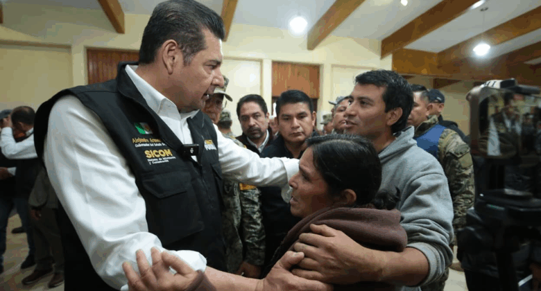 El gobernador Alejandro Armenta Mier se trasladó a Huauchinango, uno de los puntos más golpeados, para coordinar directamente las labores de auxilio. En el Recinto Ferial, habilitado como albergue temporal, se reunió con familias evacuadas de comunidades incomunicadas.