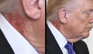 El presidente Trump utiliza una crema muy extendida en el lado derecho del cuello, que es un tratamiento cutáneo preventivo, recetado por el médico de la Casa Blanca.