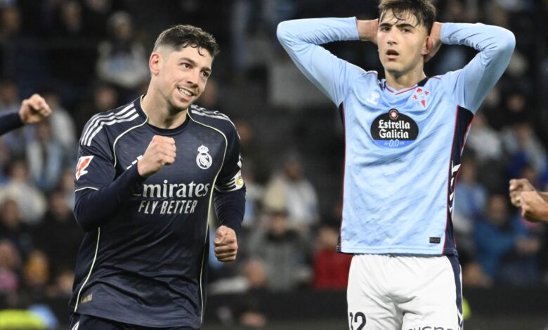 El uruguayo Valverde acudió al rescate de los blancos en el 90+5′, con un tiro desviado por Marcos Alonso, ex del Barça y del Chelsea, cuando todo apuntaba a un reparto de puntos en Balaídos.